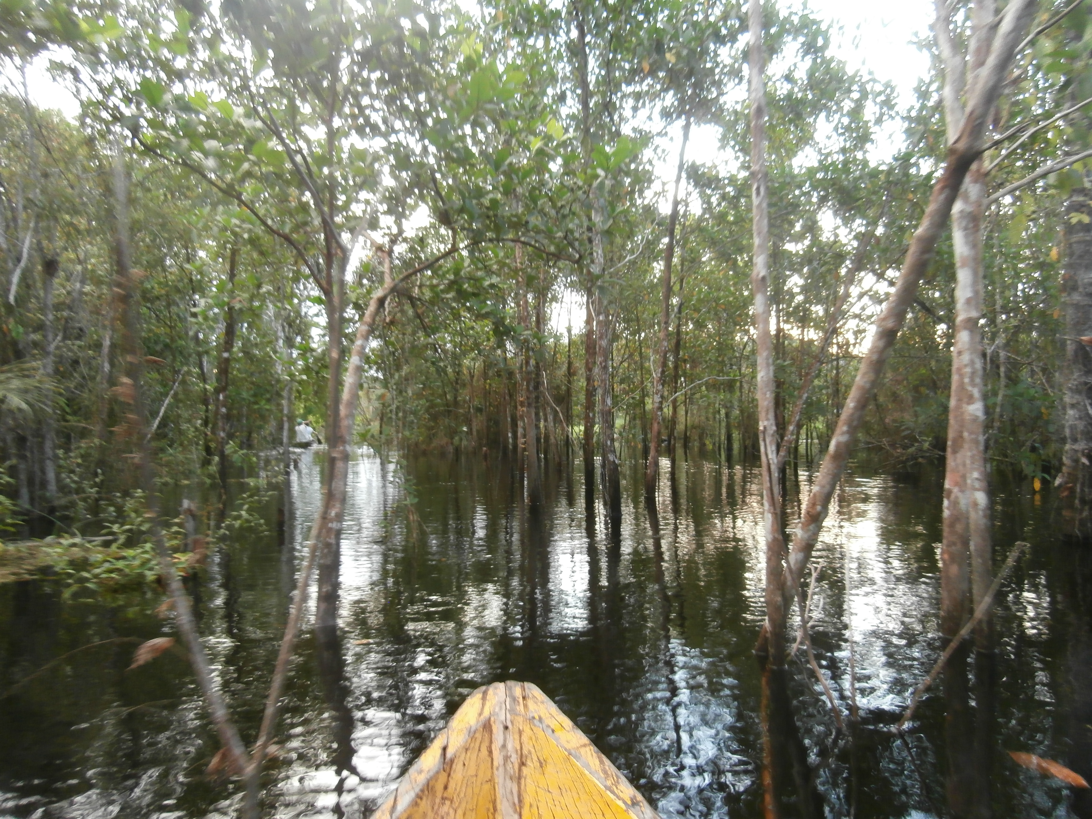 The jungle orchestra provided a rousing soundtrack as I steered my dugout canoe from the geographic certainty of Brazil’s Urubu River into the randomness of the flooded rainforest: the syncopated rhythm as each gasp for breath was louder than the paddle splash that preceded it; the atonal yet beguiling melodies of myriad creatures in a hidden wind section; and the distant thunder striving to be a worthy soloist. As these sounds lulled me into a trance the impressionist blur of endless green was punctuated by a vivid image: a young Sataré Mawé tribesman hopping from foot to foot and waving a hand covered in a straw-woven glove from which ants trailed down his arm while his tribe marked the beat with hand drums and chanting. If only I could point my canoe in the right direction, I might encounter a ritual perpetuating beliefs that knit together the very fabric of Sataré Mawé society.