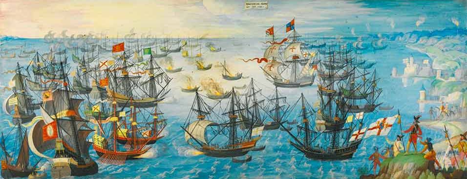 Elizabeth I watching the defeat of the Spanish Armada, by an unknown 16th century artist