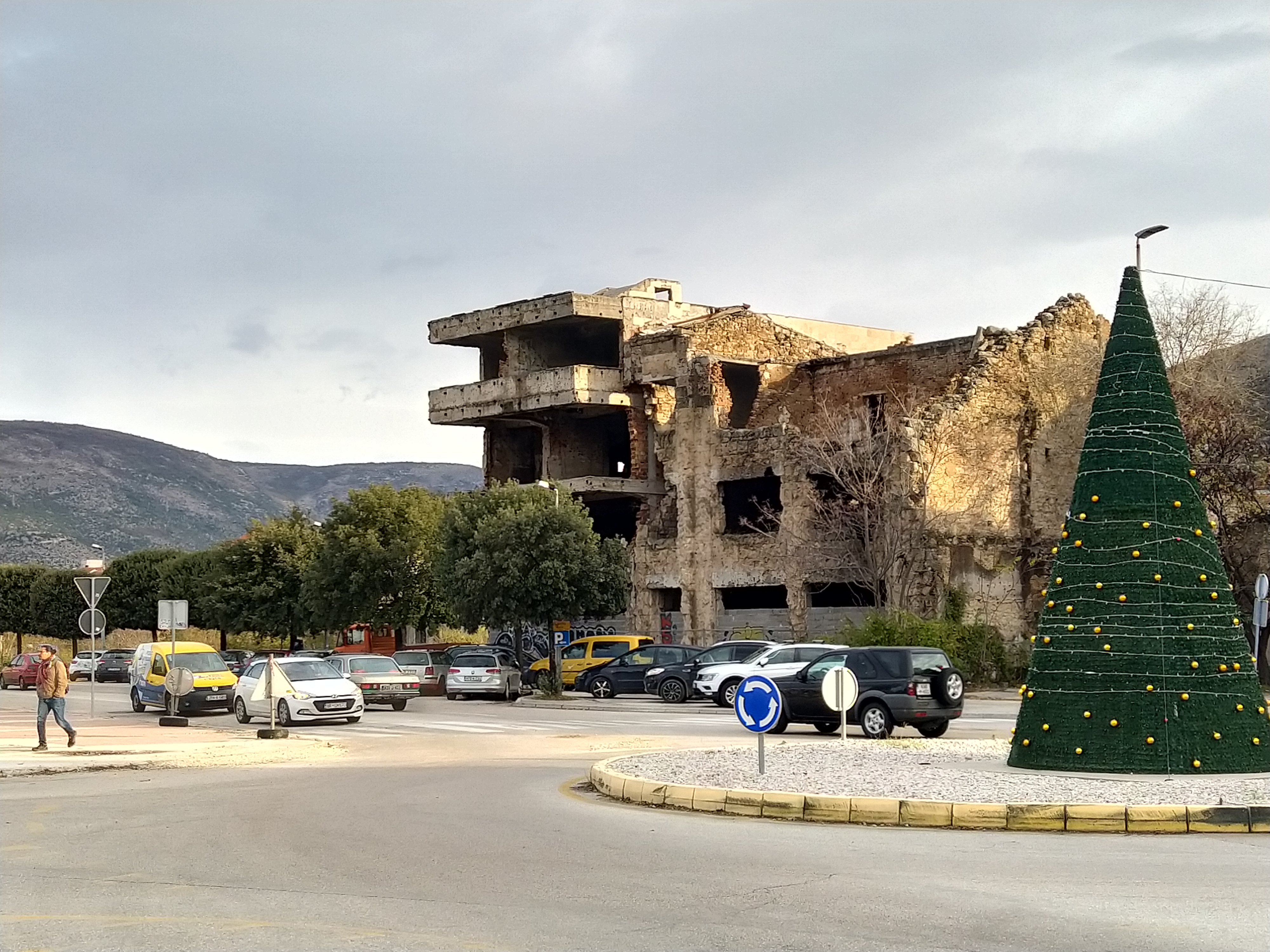 There can be few places where the scars of the Bosnian War remain so evident today: buildings pocked with bullet holes, split by shells or shorn of their roofs, and the quaint old town, with its iconic medieval bridge, looks as sparkling new as a Vegas imitation.